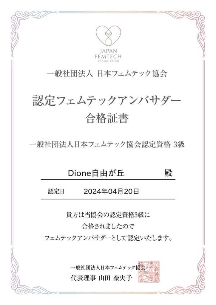 美容事業部の全スタッフが日本フェムテック協会よりフェムテックアンバサダーとして認定を受けています。